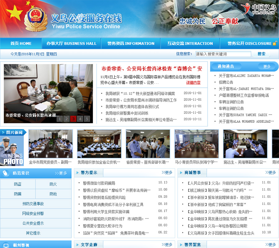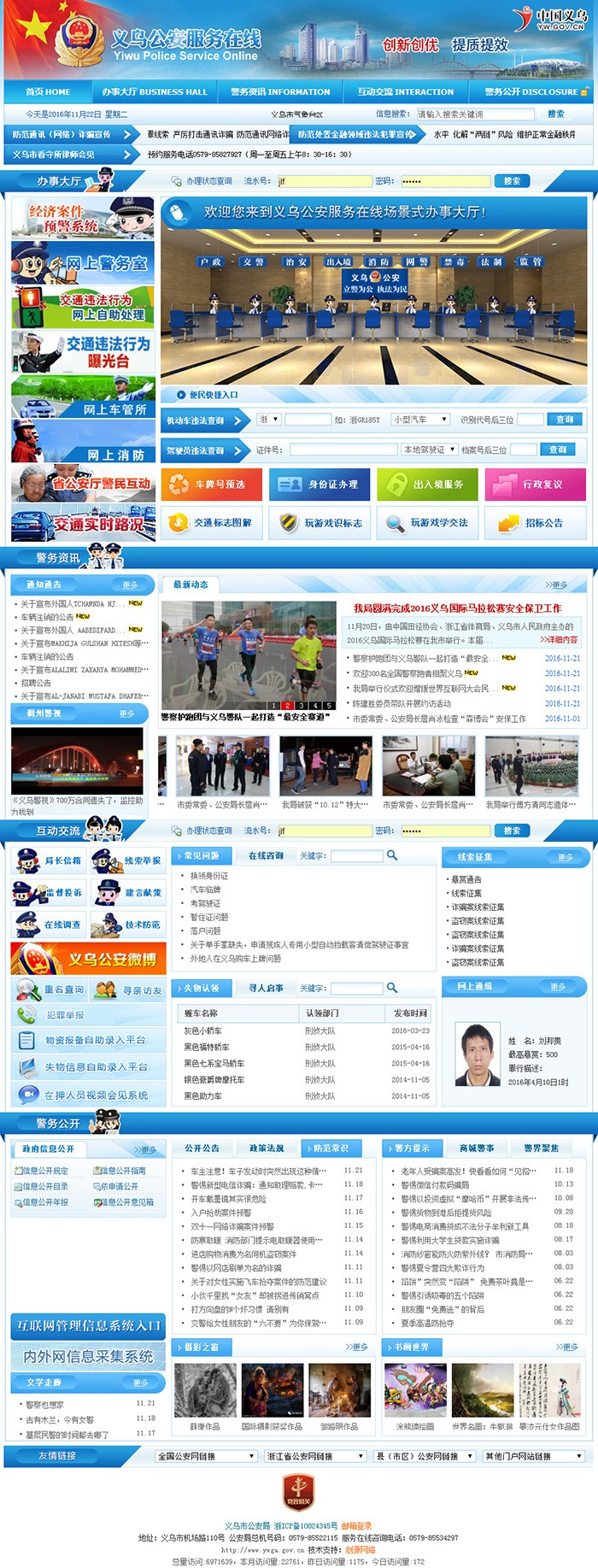 義烏公安服務(wù)在線是義烏市公安局推出的便民舉措。是集網(wǎng)上辦事、政策宣傳、政務(wù)公開、社會監(jiān)督、在線互動、協(xié)查破案等功能于一體的互聯(lián)網(wǎng)電子政務(wù)平臺。