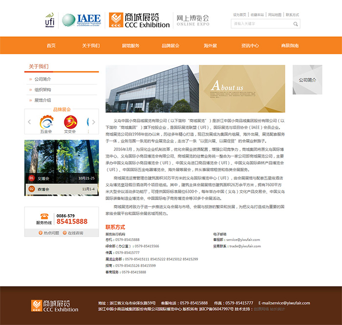 義烏中國小商品城展覽有限公司是浙江中國小商品城集團股份有限公司(滬證代碼600415)旗下控股企業(yè),專業(yè)組織國內(nèi)外展覽業(yè)務(wù),是國際展覽業(yè)協(xié)會(UFI)、國際展覽管理協(xié)會(IAEE)成員。
