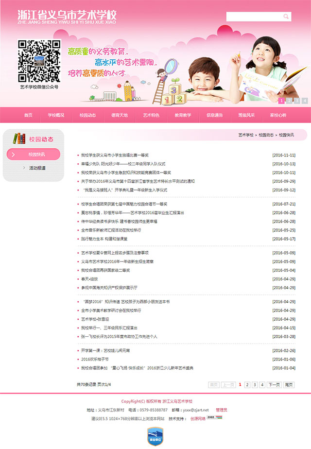 學校1997年建成,座落于美麗的義烏江畔、中國小商品城的東側(cè)。校園占地面積13.5畝,總投資1000余萬元由教學樓、藝術樓、學生公寓三大塊組成。學校環(huán)境幽雅,教舍寬敞、設施齊全,琴房、演播室、電腦室、藝術訓練室、閉路電視等一些現(xiàn)代化教學設施齊全。